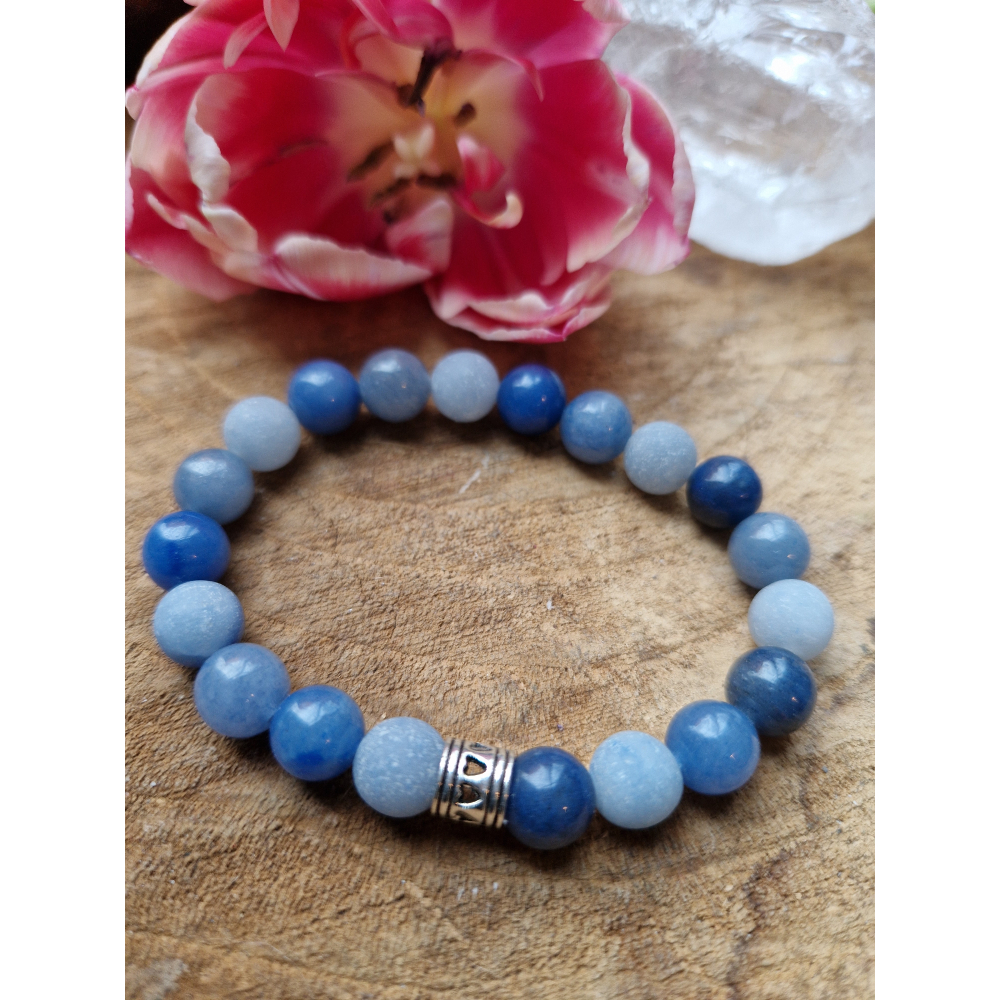 Ontdek de rustgevende energie van blauwe aventurijn met deze handgemaakte edelstenen armband. De natuurlijke kralen van blauwe aventurijn staan bekend om hun kalmerende werking en het bevorderen van innerlijke balans, zelfdiscipline en mentale helderheid. Een prachtige armband die niet alleen stijlvol is, maar ook spirituele kracht met zich meebrengt.