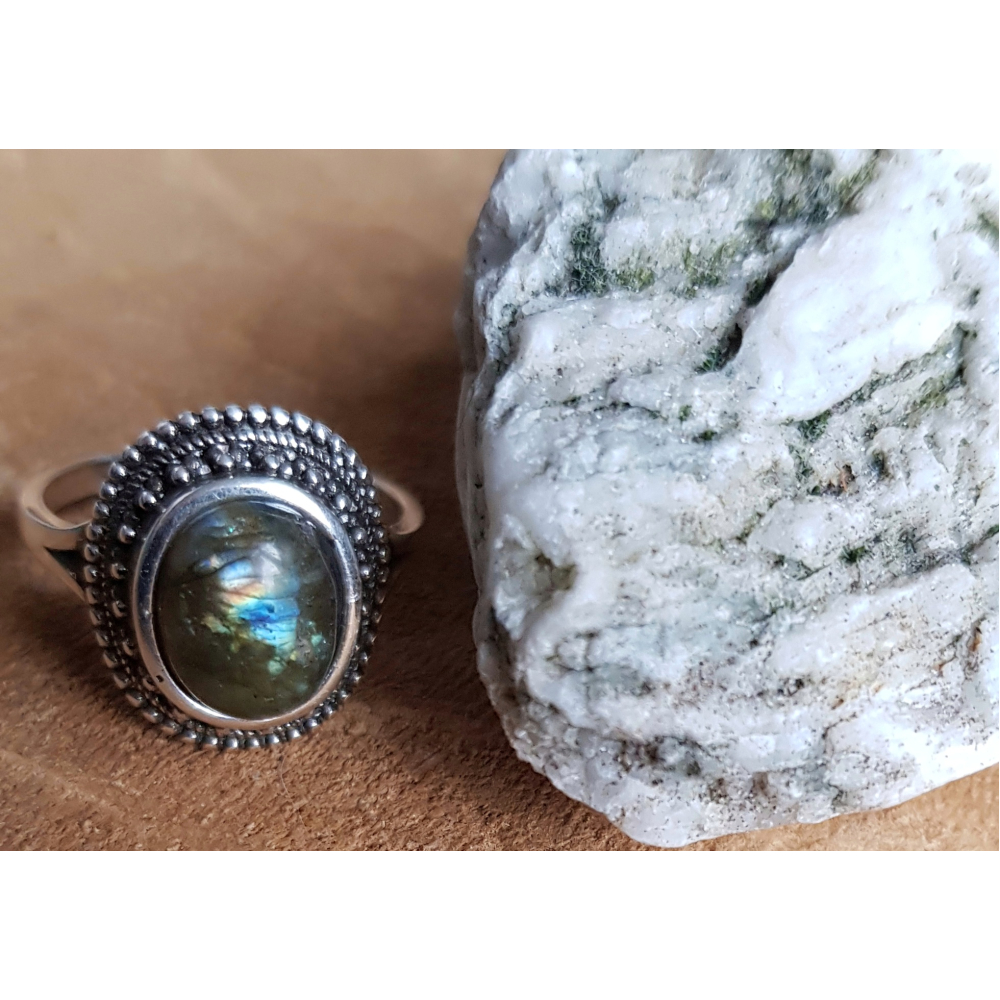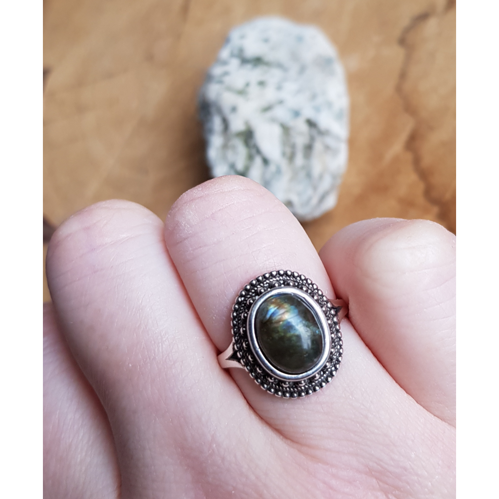 Deze prachtige zilveren labradoriet ring heeft een klassiek uiterlijk en maakt jouw look helemaal af.
