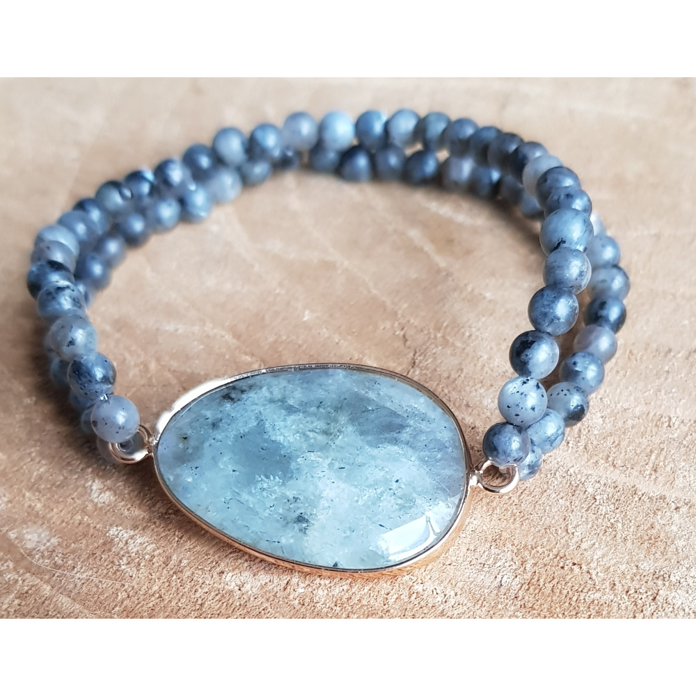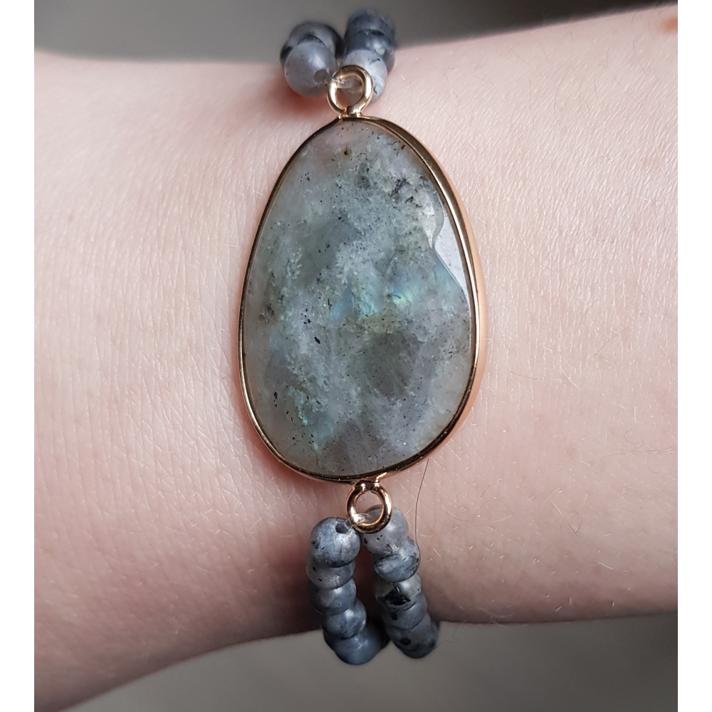 Let op: Op de foto's van de verschillende keuzes zijn de edelsteen kralen even provisorisch vastgemaakt aan de steen. Alle armbanden komen eruit te zien zoals op de eerste twee foto's waarop de wikkelarmband labradoriet is te zien.