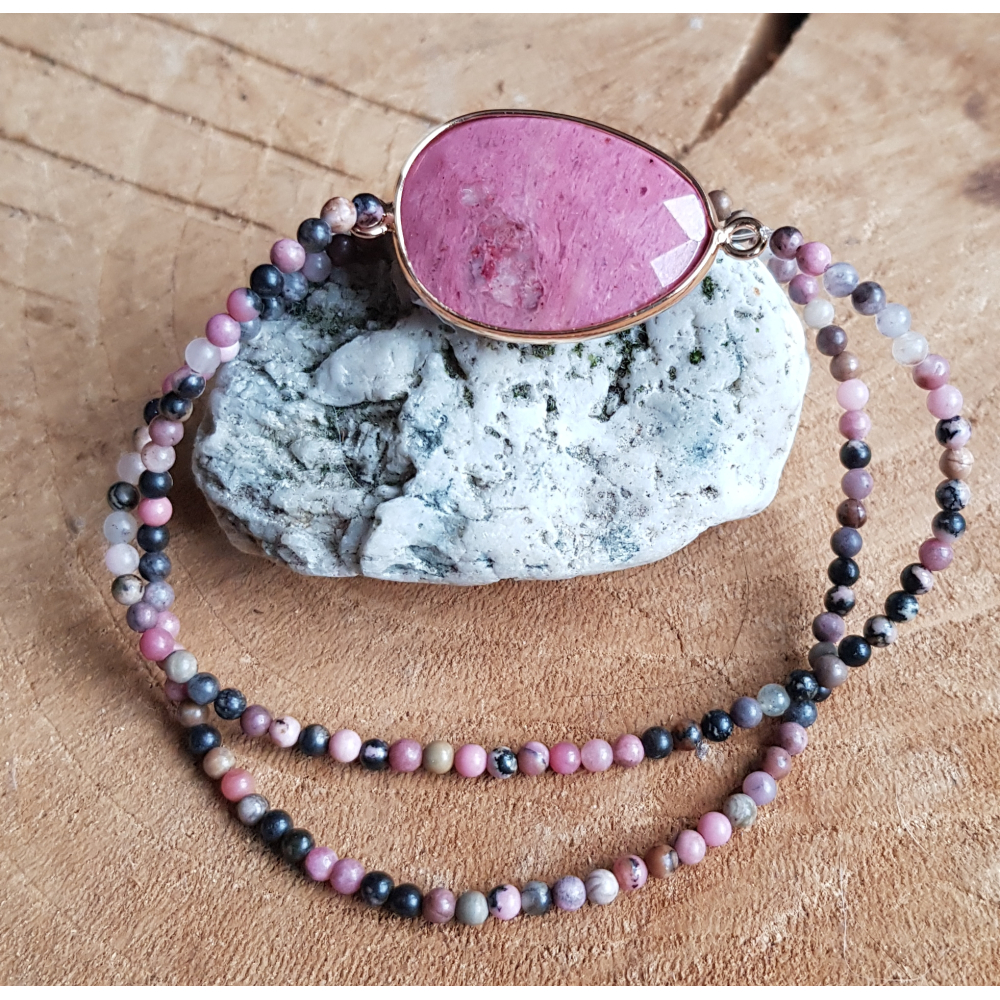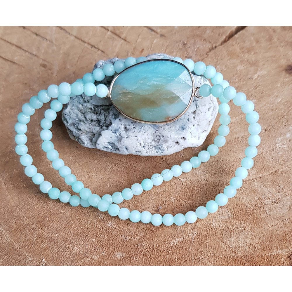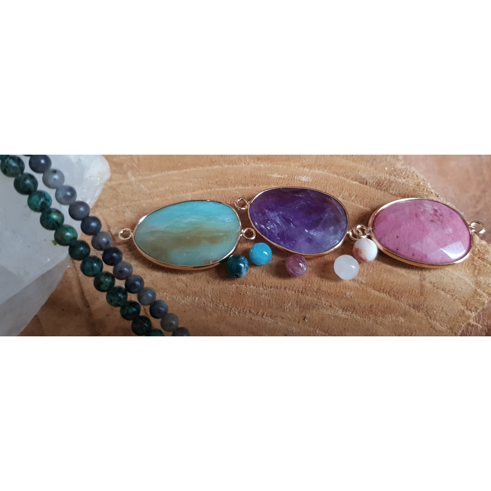 Deze wikkelarmband kan je geheel naar eigen wens samenstellen. De grote edelsteen bovenop kun je kiezen en welke edelsteenkralen je daarbij wilt.